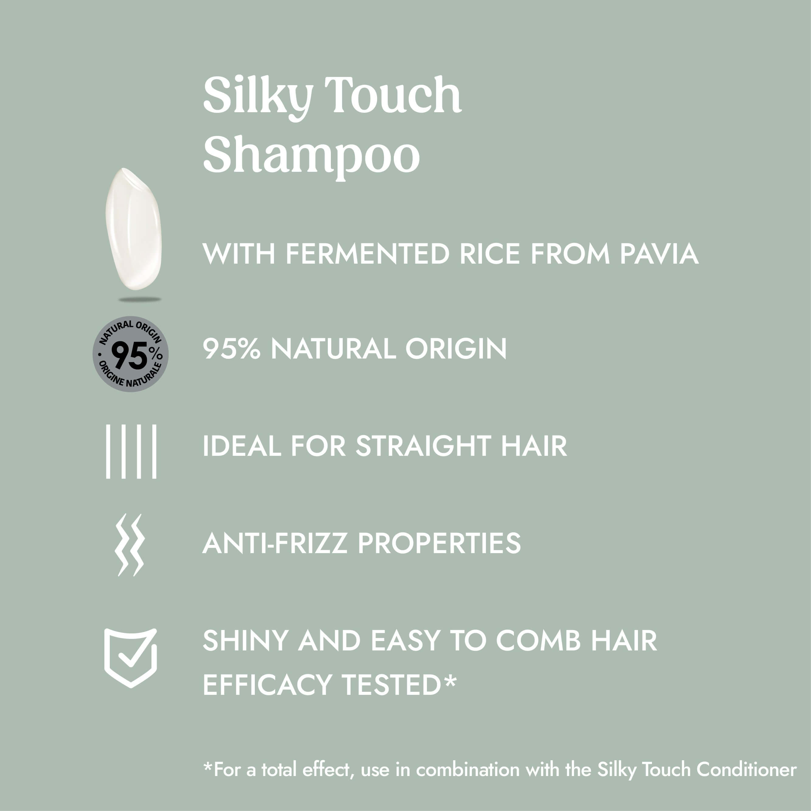 Wenn Wissenschaft und Technologie auf traditionelle Weisheit treffen, entsteht ein einzigartiges Pflegeprodukt. Unser Silky Touch Shampoo basiert auf einem jahrhundertealten orientalischen Schönheitsritual, bei dem fermentiertes Reiswasser als wertvolle Zutat verwendet wird. Durch den Fermentationsprozess wird das Reiswasser mit wichtigen Nährstoffen angereichert, darunter Vitamin B, C und E, sowie essenzielle Mineralien und Aminosäuren, die das Haar intensiv pflegen, seinen Feuchtigkeitsgehalt bewahren und ihm einen strahlenden Glanz verleihen.